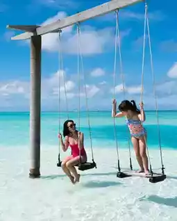 The outdoor spaces of the Overwater Sunrise Suites and Overwater Sunset Suites cleverly incorporate overwater hammocks, adding a touch of fun.