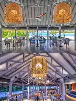 Inspired by the Maldivian Dhoni boat and its journey across Maldivian waters, the design concept of the overwater villas revolves around the theme of "Sailing Serenity." The flowing lines and soothing atmosphere of the boat journey create a space that blends with the beauty of the surrounding waters within the villas, designed to create a warm and peaceful ambiance in the rooms.