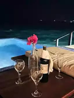 I like lying on the balcony of the water villa, feeling the breeze, watching the starry sky, enjoying every day's sunset and evening glow, liking the $108 lobster even more, and liking the toilet built over the water even more.