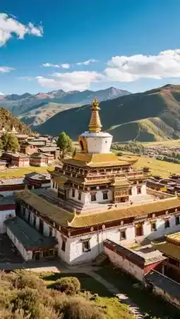 - Red walls, golden roofs, fluttering prayer flags, mysterious and solemn atmosphere