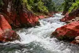 On the second day, I chose a more relaxed activity since I’m not an "outdoor expert." The Red Canyon rafting was incredibly thrilling! I picked the "Warrior Rafting," a 3.8 km route. When going down the drops, I got soaked and screamed all the way, the wind hitting my face felt exhilarating. Afterward, I had a mountain orchid latte at Miaomei Coffee House, the rice fragrance mixed with coffee flavor instantly revived me. In the afternoon, I went to Lidong Cultural Park and caught the Saturday brocade weaving demonstration. The Li grandma’s hands were so skillful! She twisted a single thread in her hands, and in no time, a pattern appeared. I tried to learn but ended up with tangled threads, so clumsy. For dinner, I went to "Hongyun Restaurant" in the city to eat five-legged pig. I was curious about the name before, but after eating, I realized the meat was firmer than regular pork, braised in red sauce and very appetizing. It cost 60 per person, and I ate until full.