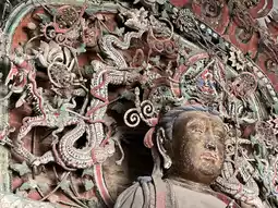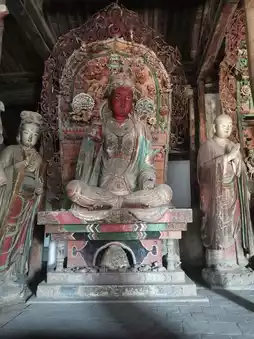 The plaque "Pilu Zhenjing" is hung in the middle of the main hall door. There are nine Buddha statues in the main hall, and there are many scattered statues and hanging statues. The entire statue group is harmonious and well-arranged, exquisite and lifelike.