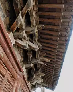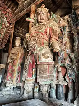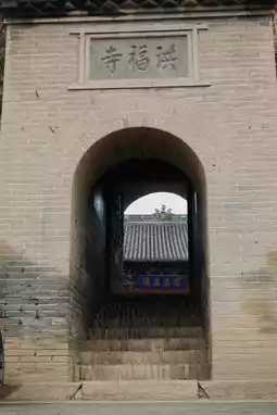 |Pilu Zhenjing. Hongfu Temple in Xinzhou is located 23 kilometers northeast of Dingxiang County. It was originally a temple. The existing buildings include a five-bay main hall facing south, a five-bay east side hall, a two-bay west side hall, a south-facing gate, and surrounding walls. The five-bay main hall has a gable and hip roof with six purlins and is three bays deep. The structure is extremely solid and beautiful.