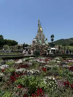 This is Hong Kong Disneyland, the Disneyland with Frozen. The park is relatively small, which makes it easier to get around. On weekdays, even the most popular attractions have wait times of less than an hour, so you can enjoy the rides comfortably. There are often times when the park is not crowded, and during those times, you can ride any attraction in about twenty minutes. The atmosphere is different during the day and at night, so be sure to enjoy both the daytime and nighttime Disneyland! Also, don’t miss the Lion King musical, one of the highlights of Hong Kong Disneyland!