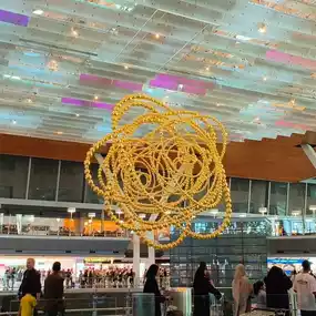 It's a bear with many names - Lamp Bear, Yellow Bear, Teddy Bear and I was just plain happy to finally see this colossal bear at Doha Airport! During a short layover in Qatar, I explored Hamed International Airport and had a sip of Fendi coffee:) I loved the artworks around the airport and the newly opened Orchard / indoor forest. It was so soothing to walk and rest among giant trees.