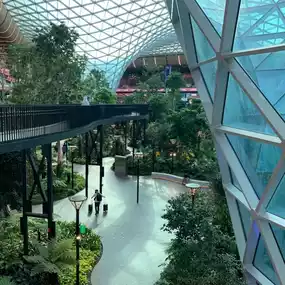 The protagonist of this area should be a canopy garden, which is not very big, but imagine having an air-conditioned garden in Doha, where the temperature is over 30 to 40 degrees Celsius. It would be a happy place. There are various tropical plants in the garden, and there are sprays, running water, and overhead on the ground floor. Along the trail, you can enjoy the garden from different angles, up and down.