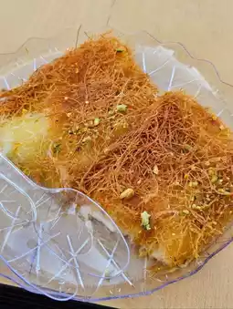 I tried Kunaf, a Middle Eastern dessert that is popular in Korea these days, at Al Aker Sweets, a Middle Eastern emotional cafe in Doha, Qatar. Kunaf is a Middle Eastern snack made with crunchy kadayif, sweet sugar syrup, and cheese.