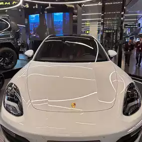 The view from the boarding area is a large glass panel, giving a great view without having to buy a bus ticket.