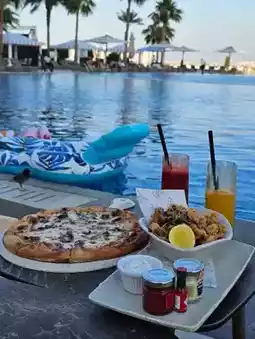 I felt like my fatigue was relieved by swimming in the warm sea of Doha, Qatar, and I had a great day swimming in the sea and the pool. While swimming, I got hungry and ordered pizza and fried squid. This place is a great place for pizza. I ordered truffle pizza, and the fragrant truffle flavor filled my mouth, which was so delicious.