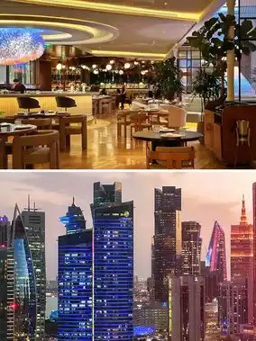 Qatar Waldorf Astoria Doha West Bay The hotel's simple lines, strong contrasting colors, and luxurious decor create a strong sense of 1930s New York City! The hotel's sky pool is more than 7 meters high, and the spacious space conveys a free and unrestrained attitude towards life. The large floor-to-ceiling windows capture the city's neon lights and the distant desert, offering a stunning view.