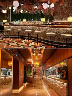 There is also Ledoux, a tribute to the French pastry shops of the 1920s, with painted wood paneling, soft-toned marble, and soft furniture, as well as light-colored hand-woven carpets, pink flowers, low-saturation leather seats, and light champagne-colored lamps, adding a soft texture to the area! The Cortland Bar, a jazz lounge bar with a height of 5 meters, features polished copper, luxurious gold, and textured black, with six tall wine racks standing tall, showcasing many fine wines. The space is luxurious and bright, and every cocktail is special! The hotel's all-day dining restaurant, Tribeca Market, exudes a strong retro vibe. The colors of red, black, cream, and antique brass create a unique style for the restaurant. How can you miss such a wonderful Waldorf Astoria Doha West Bay?