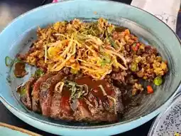 First of all, the steak served with beef kimchi fried rice is so moist and soft and has a Korean feel, so it's a taste that Koreans will definitely like. And the roast duck was so delicious, crispy on the outside and moist on the inside. Also, the cassava fritters had a wonderful savory flavor.