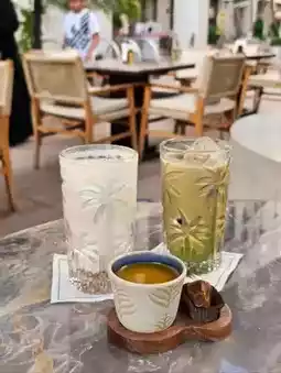 We ordered a date milk shake, a date matcha latte, and Arabic coffee. The total price was 32.50 riyals (about 30,000 won). The milkshake with sweet date was really delicious. And the staff gave me a taste of the date as a service, so I was able to taste Kin Wan's date.
