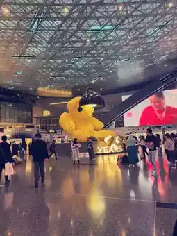 That giant yellow teddy bear in the middle of the terminal is an iconic art piece by Urs Fischer. It’s quirky, Insta-worthy, and has become a symbol of the airport🐱
