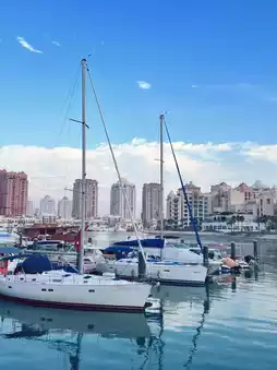 • Watch yachts come and go at the Porto Arabia harbor 🛥️