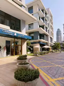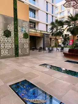 a vibrant, air‑conditioned outdoor promenade with luxury shops & restaurant 🥘 ☕️