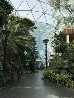 Located in the new terminal (Concourse A), this expansive indoor garden features over 300 real trees sourced from around the globe 🌱🍃. The glass walkways and gleaming floors create a resort-like ambiance, making you feel as though you’re in a luxury retreat rather than an airport.