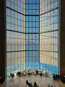 The entire museum seems to float above the Doha waterfront,