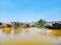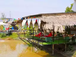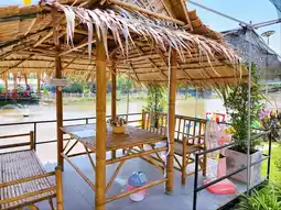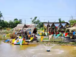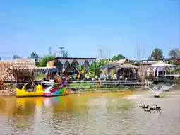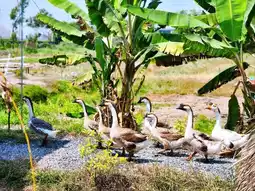 The atmosphere is really great, absorbing the nature, fish ponds, ducks, geese walking around, showing off their bodies, the interior is spacious, there are many seating areas, and they also welcome pets.