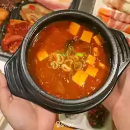 🇰🇷 There are many Korean dishes to choose from, including various parts of pork, fried snacks, soup, rice, fresh vegetables, fruits, etc. And the most amazing thing is the marinated pork. Samgyup Sal marinates it until it is delicious, fun to eat, and smooth on the tongue. This delicious food is not expensive at all when compared to the price. Only 333 baht per person (price does not include refillable drinks 50 baht). Eat until you are full, no time limit.