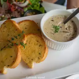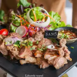 A garden-like restaurant in Don Mueang area. Just entering is like escaping from the chaos and relaxing like you're at home. SANO KITCHEN serves healthy food but the taste is indescribable. Because SANO means health, the restaurant has carefully selected each dish to serve with quality that is worth the price. Served in very large plates, bringing your family or loved ones will feel special. All kinds of soups here are delicious and generous. Mushroom soup, I like this a lot. When you see mushroom pieces, you will find soft and fragrant pumpkin soup. The clam bread set is even more delicious when you dip it. Another menu that you shouldn't miss is the angel hair crab curry. The crab meat is so thick that you can't finish it all. It's so full. Let's put it this way, the food at SANO is diverse. The more you eat, the healthier it is. The vegetables or salads here are fresh and juicy. You have to pin this! Here, the staff are very friendly and helpful.
