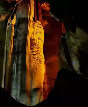 The E Niang Cave on the mountain is located halfway up the mountain northeast of the main peak. It is unfathomably deep and the road inside the cave is winding. This cave has three stone halls that can accommodate tens of thousands of people. There are whirlpools of flowing water below the stone halls. Therefore, a glass floor was used in the design. Through the glass, you can see the flowing water below. The overall design and lighting arrangement were very careful. The cave walls are uneven, with different shapes and poses, making them uniquely interesting. Below the stone hall, the water vortexed and surged, hitting the cave cliff and making a roaring sound that made people's hair stand on end. Where this water comes from and where it goes, no one has known for thousands of years.