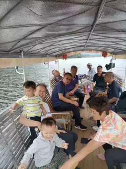 This scenic area is not as bustling as others; it can be said that there are almost no other water amusement projects, only boat tours are offered. The boats are small, seating about 20 people, and the boat fare is not expensive, 30 yuan per person. On the day we went, we happened to meet a group of fellow Xinjiang people who were on a self-driving tour. It's a fortunate encounter to meet acquaintances in a foreign land. We shared a boat with them (there were only five of us, and the boat rental was 50 yuan per person) and toured the Little Guilin landscape for about 30 yuan per person. It was truly beautiful . The tour took about 50 minutes, which was very cost-effective. If you have the chance, you must go and see it.