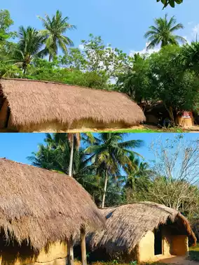 Now no one lives in the thatched cottages, the villagers have moved to new houses at the entrance of the village. As for the shape of the house, it is said that after the ancestors of the Li people came to Hainan Island, they had no house to live in, so they turned the boat upside down and lived in it, and later people made the house into this shape.