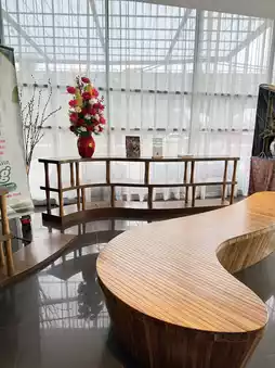 I wasn’t expecting much from a 3-star hotel lobby, but Hotel N°5’s open-air lobby genuinely impressed me. Wooden bench seating, local cultural displays (especially the beautiful Kaamatan-themed corner), and lots of sunlight filtering in through glass panels.