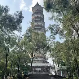 Liuhua Tower🏯 was first built during the Wanli period of the Ming Dynasty (1573-1620 AD), and has a history of more than 400 years. At that time, Yuan Changzuo from Chashan, Dongguan and Yuan Yingwen from Wentang proposed to build this Feng Shui tower🏯 to suppress the floods in Dongjiang River💦. Next to the tower was the hometown of Xiong Fei, a hero who fought against the Yuan Dynasty in the late Southern Song Dynasty - Liuhua Village🏘️, so it was named Liuhua Tower🏯, and Liuhua Park🌳 was also named after it. The tower is seven stories high and octagonal in shape, 30 meters high. It has a red stone foundation and is built with blue bricks and gray sand. It was repaired three times in 1934, 1982 and 1999.
