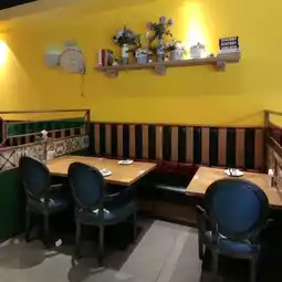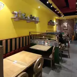 The decoration of the shop is wide and bright yellow retro romantic style mainly