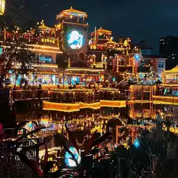 🏮The lighting atmosphere of the ancient village after the lights come on creates a very beautiful night view