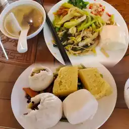 The temple has fasting meals, tea, candy and sofas for visitors to rest!