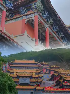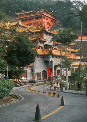 In the Dalingshan area near Shenzhen, there is a temple hidden deep in the mountains. It's not crowded, with red walls and grand buildings, both beautiful and photogenic. The Guanyin Temple has a history of over three hundred years and has undergone several expansions to reach its current size.