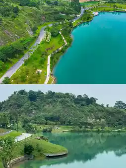 With the original stone mountains, emerald green lawns, and small flowers... At a glance, it is green, very comfortable, and very pleasant... Plus, there are transparent glass viewing platforms by the lake, which are perfect for taking photos!