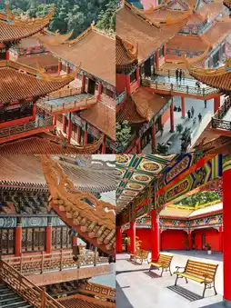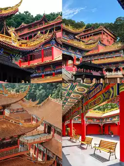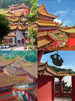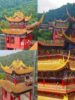 The architecture of the Guanyin Temple is built on the mountainside, with a grand scale and magnificent golden decorations. It is known as the "Guangdong version of the Potala Palace". The interior of the temple is modernly decorated, with an elevator and sofas, providing a suitable environment for short-term meditation. There are several halls within the temple, including the Hall of Heavenly Kings, the Mahavira Hall, and the Guanyin Pavilion. In front of each hall, there are believers praying devoutly.