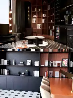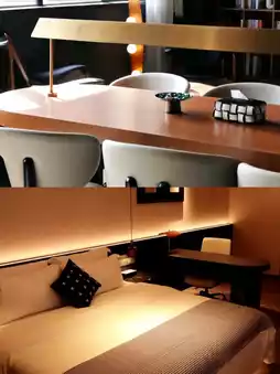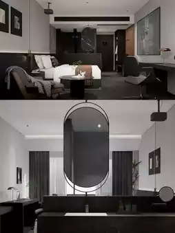 the hotel is mainly black, calm and atmospheric, with light French elements.