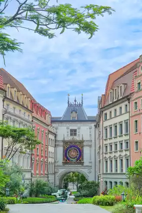 5. **Along the Mini Train Route**: A red vintage mini train weaving through European-style streets adds dynamic charm 🚂. Stand by the tracks and snap a shot as the train passes—it’s super atmospheric. Note: The train runs every 10–15 minutes, so be ready!