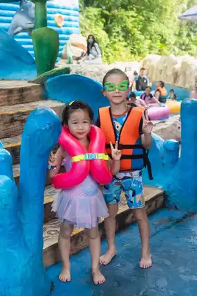 The atmosphere is lively, and kids can play with water openly, which makes them even happier.