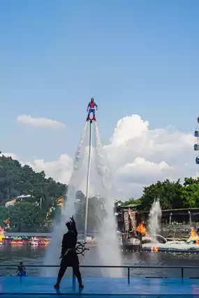 The fireworks show starts at 8:00 PM, combined with water stunts, making it very spectacular.