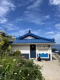 Looking for a gift shop with a stunning ocean view? Mukoya Gift Shop, located in Donghae's Dojjaebigol area, is the perfect spot! To find it, take the path below Mukho Lighthouse. The shop is cozy, as it’s a renovated house, and features adorable items with a local touch. The highlight is the breathtaking ocean view right outside the window. Plus, the blue entrance is a popular photo spot, so don’t forget to snap a picture!