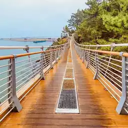 1. **Korea’s Only Ocean Suspension Bridge**: This 72-meter-long bridge, opened in 2019, is uniquely built over the ocean, offering thrilling views of the East Sea and surrounding rock formations like **Chotdaebawi (Candlestick Rock)**—a legendary sunrise spot featured in Korean dramas like *Winter Sonata* .