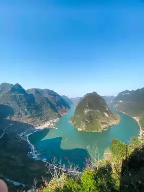 2️⃣ There are two check-in spots at the first bay of Hongshui River. One is a free check-in spot in the pavilion halfway up the mountain, and the other is a paid check-in spot at the top of the mountain. There is a glass plank road that overlooks the U-shaped bend in the entire mountain group. It is very spectacular to take photos and check in⛰️