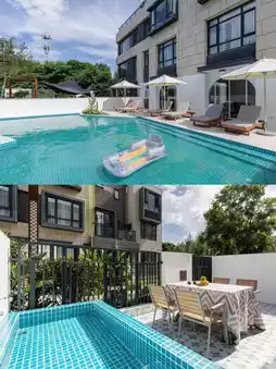 ✅Complete facilities: The homestay provides free washing and drying machines, outdoor swimming pools and children's playgrounds, as well as butler pick-up and drop-off services, and the stay is safe and secure