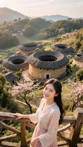 Tianluokeng 'Four Dishes and One Soup' (🎫 90 RMB): 🚗 From the observation deck, overlook the 'four round and one square' Tulou cluster, resembling plum blossoms blooming on the ground, a paradise for photographers. Descend to get a closer look at Yuchang Building (the leaning Tulou), and experience an architectural marvel. Suggested duration: 3-4 hours