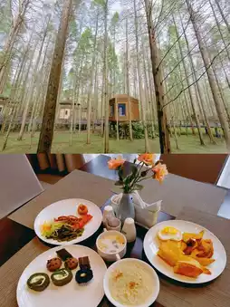 After a busy week of work, you can go to the forest to relax and recharge. It is recommended to book a forest cabin to rest comfortably for the night and breathe fresh air the next morning. During peak season, availability is tight, so please plan your trip early. We stayed in 'Honey Words' (there are various types of forest cabins, we chose a slightly larger one). The cabin has a living room, a bathroom (equipped with a bathtub and shower), and an outdoor balcony outside the bedroom. The hotel provides a shuttle service, and breakfast is enjoyed in the hotel lobby. After having the buffet breakfast, we moved the chairs to the balcony, and the feeling of being in nature was just too good, breathing fresh air, listening to the birds chirping, very pleasant. Booking the hotel also included park tickets, the forest is simply a natural oxygen bar, it is recommended to bring your own food to enjoy inside, although there are simple meals available in the park, after all, it is a tourist spot, so don't set your expectations too high for gourmet food. Walking around the park takes about three hours, and those who tire easily can rent a small electric cart at the entrance.