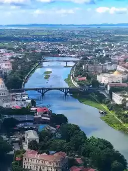 The best viewpoint of the China-Vietnam border river! Colorful houses of Mong Cai, Vietnam, are fully in sight
