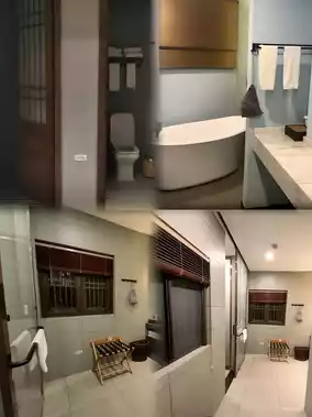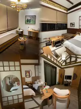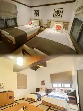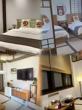 The bed in the room should be a 2-meter wide bed, and the sofa can also be pulled out into a bed, so this room can accommodate 2 adults and 2 children. We took pictures for our friends, and they all thought we went to Japan.