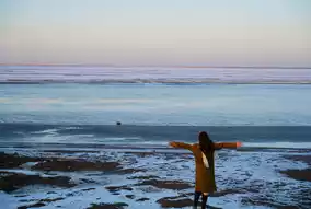 Walk along the wooden bridge and boardwalk, the reeds whispering in the breeze, the sunset casting its glow, and the Yellow River Estuary dyed a mesmerizing orange-red.