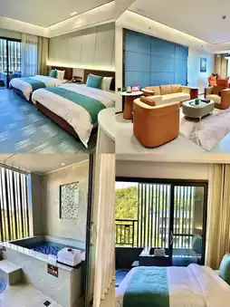 This is a comprehensive national 4A-level tourist attraction that integrates leisure and entertainment, landscape, hot spring health, business meetings, catering and accommodation, fitness, and ecological farms. The room we stayed in this time🛏️ is very good, with Chinese decoration style, quite antique~🈶Hot spring twin room and double bed room, hot spring suite with mahjong table, babies who like to play mahjong🀄️, come and gather!